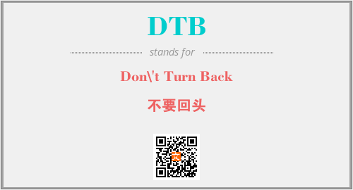 以上为Don\'t Turn Back英文缩略词DTB的中文解释,以及该英文缩写在英语的流行度、分类和应用领域方面的信息。