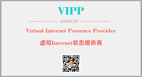 英文缩略词“VIPP”经常作为“Virtual Internet Presence Provider”的英文缩写来使用,中文表示:“虚拟Internet状态提供商”。本文将详细介绍英文缩写词VIPP所代表英文单词,其对应的中文拼音、详细解释以及在英语中的流行度。此外,还有关于缩略词VIPP的分类、应用领域及相关应用示例等。