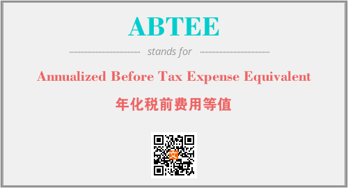 上述内容是“Annualized Before Tax Expense Equivalent”作为“ABTEE”的缩写,解释为“年化税前费用等值”时的信息,以及英文缩略词ABTEE所代表的英文单词,其对应的中文拼音、详细解释以及在英文中的流行度和相关分类、应用领域及应用示例等。