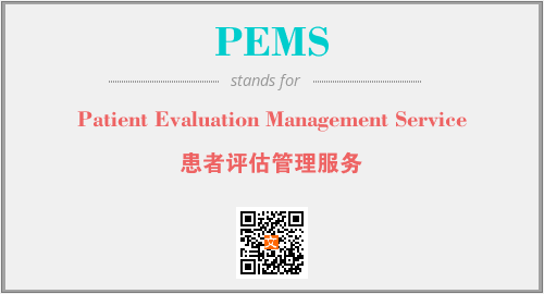 上述内容是“Patient Evaluation Management Service”作为“PEMS”的缩写,解释为“患者评估管理服务”时的信息,以及英文缩略词PEMS所代表的英文单词,其对应的中文拼音、详细解释以及在英文中的流行度和相关分类、应用领域及应用示例等。