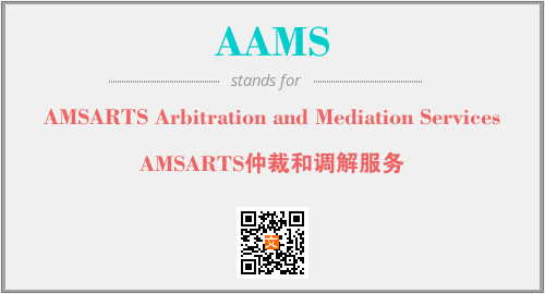 上述内容是“AMSARTS Arbitration and Mediation Services”作为“AAMS”的缩写,解释为“AMSARTS仲裁和调解服务”时的信息,以及英文缩略词AAMS所代表的英文单词,其对应的中文拼音、详细解释以及在英文中的流行度和相关分类、应用领域及应用示例等。