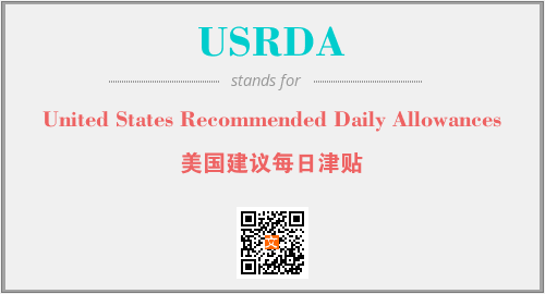 英文缩略词“USRDA”经常作为“United States Recommended Daily Allowances”的英文缩写来使用,中文表示:“美国建议每日津贴”。本文将详细介绍英文缩写词USRDA所代表英文单词,其对应的中文拼音、详细解释以及在英语中的流行度。此外,还有关于缩略词USRDA的分类、应用领域及相关应用示例等。