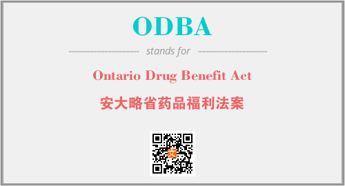 上述内容是“Ontario Drug Benefit Act”作为“ODBA”的缩写,解释为“安大略省药品福利法案”时的信息,以及英文缩略词ODBA所代表的英文单词,其对应的中文拼音、详细解释以及在英文中的流行度和相关分类、应用领域及应用示例等。