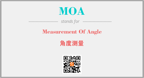 上述内容是“Measurement Of Angle”作为“MOA”的缩写,解释为“角度测量”时的信息,以及英文缩略词MOA所代表的英文单词,其对应的中文拼音、详细解释以及在英文中的流行度和相关分类、应用领域及应用示例等。