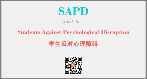 以上为Students Against Psychological Disruption英文缩略词SAPD的中文解释,以及该英文缩写在英语的流行度、分类和应用领域方面的信息。