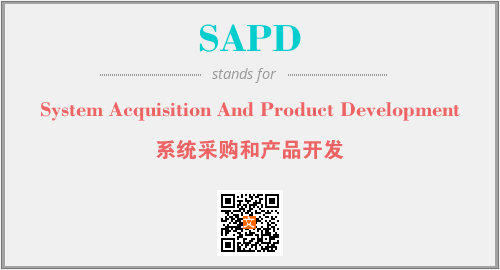 上述内容是“System Acquisition And Product Development”作为“SAPD”的缩写,解释为“系统采购和产品开发”时的信息,以及英文缩略词SAPD所代表的英文单词,其对应的中文拼音、详细解释以及在英文中的流行度和相关分类、应用领域及应用示例等。