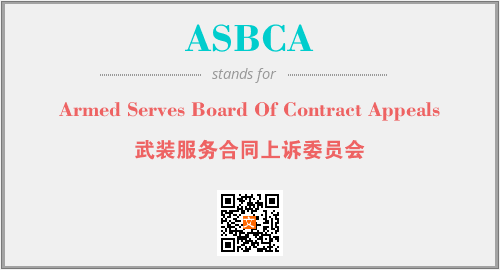 英文缩略词“ASBCA”经常作为“Armed Serves Board Of Contract Appeals”的英文缩写来使用,中文表示:“武装服务合同上诉委员会”。本文将详细介绍英文缩写词ASBCA所代表英文单词,其对应的中文拼音、详细解释以及在英语中的流行度。此外,还有关于缩略词ASBCA的分类、应用领域及相关应用示例等。