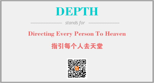 以上为Directing Every Person To Heaven英文缩略词DEPTH的中文解释,以及该英文缩写在英语的流行度、分类和应用领域方面的信息。
