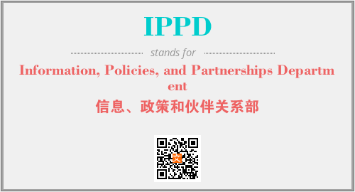 上述内容是“Information, Policies, and Partnerships Department”作为“IPPD”的缩写,解释为“信息、政策和伙伴关系部”时的信息,以及英文缩略词IPPD所代表的英文单词,其对应的中文拼音、详细解释以及在英文中的流行度和相关分类、应用领域及应用示例等。
