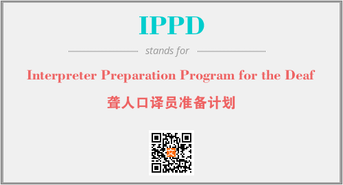 英文缩略词“IPPD”经常作为“Interpreter Preparation Program for the Deaf”的英文缩写来使用,中文表示:“聋人口译员准备计划”。本文将详细介绍英文缩写词IPPD所代表英文单词,其对应的中文拼音、详细解释以及在英语中的流行度。此外,还有关于缩略词IPPD的分类、应用领域及相关应用示例等。
