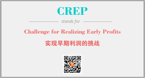 以上为Challenge for Realizing Early Profits英文缩略词CREP的中文解释,以及该英文缩写在英语的流行度、分类和应用领域方面的信息。