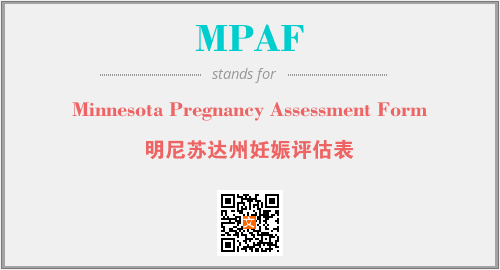 上述内容是“Minnesota Pregnancy Assessment Form”作为“MPAF”的缩写,解释为“明尼苏达州妊娠评估表”时的信息,以及英文缩略词MPAF所代表的英文单词,其对应的中文拼音、详细解释以及在英文中的流行度和相关分类、应用领域及应用示例等。