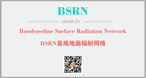 上述内容是“Bsrnbaseline Surface Radiation Network”作为“BSRN”的缩写,解释为“BSRN基线地面辐射网络”时的信息,以及英文缩略词BSRN所代表的英文单词,其对应的中文拼音、详细解释以及在英文中的流行度和相关分类、应用领域及应用示例等。