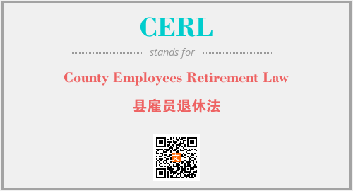 英文缩略词“CERL”经常作为“County Employees Retirement Law”的英文缩写来使用,中文表示:“县雇员退休法”。本文将详细介绍英文缩写词CERL所代表英文单词,其对应的中文拼音、详细解释以及在英语中的流行度。此外,还有关于缩略词CERL的分类、应用领域及相关应用示例等。