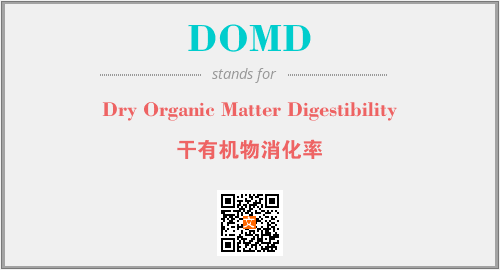 上述内容是“Dry Organic Matter Digestibility”作为“DOMD”的缩写,解释为“干有机物消化率”时的信息,以及英文缩略词DOMD所代表的英文单词,其对应的中文拼音、详细解释以及在英文中的流行度和相关分类、应用领域及应用示例等。