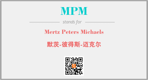 英文缩略词“MPM”经常作为“Mertz Peters Michaels”的英文缩写来使用,中文表示:“默茨-彼得斯-迈克尔”。本文将详细介绍英文缩写词MPM所代表英文单词,其对应的中文拼音、详细解释以及在英语中的流行度。此外,还有关于缩略词MPM的分类、应用领域及相关应用示例等。