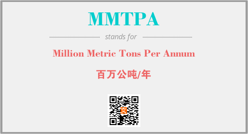 英文缩略词“MMTPA”经常作为“Million Metric Tons Per Annum”的英文缩写来使用,中文表示:“百万公吨/年”。本文将详细介绍英文缩写词MMTPA所代表英文单词,其对应的中文拼音、详细解释以及在英语中的流行度。此外,还有关于缩略词MMTPA的分类、应用领域及相关应用示例等。