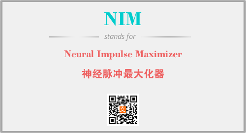 上述内容是“Neural Impulse Maximizer”作为“NIM”的缩写,解释为“神经脉冲最大化器”时的信息,以及英文缩略词NIM所代表的英文单词,其对应的中文拼音、详细解释以及在英文中的流行度和相关分类、应用领域及应用示例等。