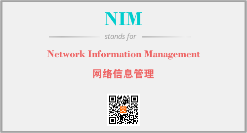 英文缩略词“NIM”经常作为“Network Information Management”的英文缩写来使用,中文表示:“网络信息管理”。本文将详细介绍英文缩写词NIM所代表英文单词,其对应的中文拼音、详细解释以及在英语中的流行度。此外,还有关于缩略词NIM的分类、应用领域及相关应用示例等。