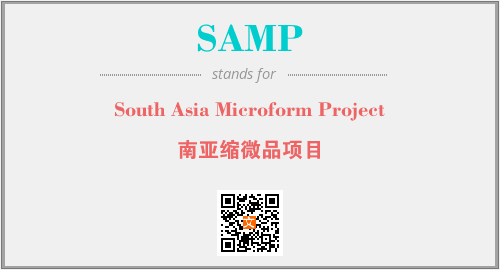 上述内容是“South Asia Microform Project”作为“SAMP”的缩写,解释为“南亚缩微品项目”时的信息,以及英文缩略词SAMP所代表的英文单词,其对应的中文拼音、详细解释以及在英文中的流行度和相关分类、应用领域及应用示例等。
