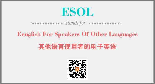 英文缩略词“ESOL”经常作为“Eenglish For Speakers Of Other Languages”的英文缩写来使用,中文表示:“其他语言使用者的电子英语”。本文将详细介绍英文缩写词ESOL所代表英文单词,其对应的中文拼音、详细解释以及在英语中的流行度。此外,还有关于缩略词ESOL的分类、应用领域及相关应用示例等。