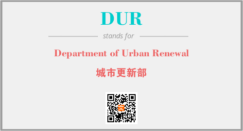 上述内容是“Department of Urban Renewal”作为“DUR”的缩写,解释为“城市更新部”时的信息,以及英文缩略词DUR所代表的英文单词,其对应的中文拼音、详细解释以及在英文中的流行度和相关分类、应用领域及应用示例等。