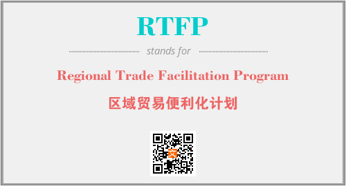 上述内容是“Regional Trade Facilitation Program”作为“RTFP”的缩写,解释为“区域贸易便利化计划”时的信息,以及英文缩略词RTFP所代表的英文单词,其对应的中文拼音、详细解释以及在英文中的流行度和相关分类、应用领域及应用示例等。