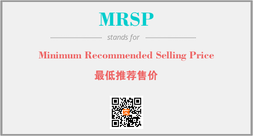英文缩略词“MRSP”经常作为“Minimum Recommended Selling Price”的英文缩写来使用,中文表示:“最低推荐售价”。本文将详细介绍英文缩写词MRSP所代表英文单词,其对应的中文拼音、详细解释以及在英语中的流行度。此外,还有关于缩略词MRSP的分类、应用领域及相关应用示例等。