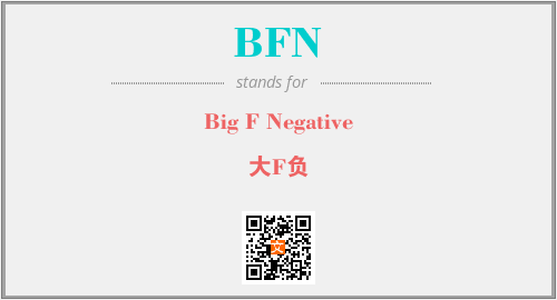 英文缩略词“BFN”经常作为“Big F Negative”的英文缩写来使用,中文表示:“大F负”。本文将详细介绍英文缩写词BFN所代表英文单词,其对应的中文拼音、详细解释以及在英语中的流行度。此外,还有关于缩略词BFN的分类、应用领域及相关应用示例等。