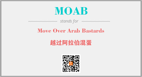 上述内容是“Move Over Arab Bastards”作为“MOAB”的缩写,解释为“越过阿拉伯混蛋”时的信息,以及英文缩略词MOAB所代表的英文单词,其对应的中文拼音、详细解释以及在英文中的流行度和相关分类、应用领域及应用示例等。