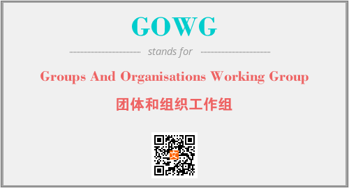 英文缩略词“GOWG”经常作为“Groups And Organisations Working Group”的英文缩写来使用,中文表示:“团体和组织工作组”。本文将详细介绍英文缩写词GOWG所代表英文单词,其对应的中文拼音、详细解释以及在英语中的流行度。此外,还有关于缩略词GOWG的分类、应用领域及相关应用示例等。