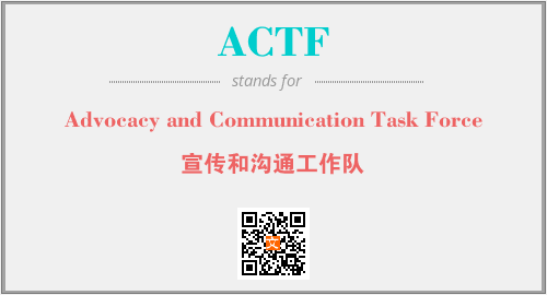 上述内容是“Advocacy and Communication Task Force”作为“ACTF”的缩写,解释为“宣传和沟通工作队”时的信息,以及英文缩略词ACTF所代表的英文单词,其对应的中文拼音、详细解释以及在英文中的流行度和相关分类、应用领域及应用示例等。