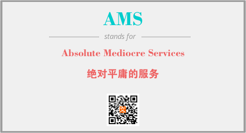 以上为Absolute Mediocre Services英文缩略词AMS的中文解释,以及该英文缩写在英语的流行度、分类和应用领域方面的信息。