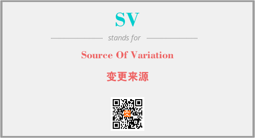 上述内容是“Source Of Variation”作为“SV”的缩写,解释为“变更来源”时的信息,以及英文缩略词SV所代表的英文单词,其对应的中文拼音、详细解释以及在英文中的流行度和相关分类、应用领域及应用示例等。