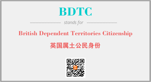 上述内容是“British Dependent Territories Citizenship”作为“BDTC”的缩写,解释为“英国属土公民身份”时的信息,以及英文缩略词BDTC所代表的英文单词,其对应的中文拼音、详细解释以及在英文中的流行度和相关分类、应用领域及应用示例等。