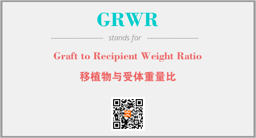 上述内容是“Graft to Recipient Weight Ratio”作为“GRWR”的缩写,解释为“移植物与受体重量比”时的信息,以及英文缩略词GRWR所代表的英文单词,其对应的中文拼音、详细解释以及在英文中的流行度和相关分类、应用领域及应用示例等。