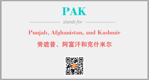 以上为Punjab, Afghanistan, and Kashmir英文缩略词PAK的中文解释,以及该英文缩写在英语的流行度、分类和应用领域方面的信息。
