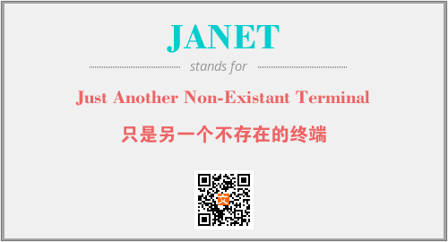 上述内容是“Just Another Non-Existant Terminal”作为“JANET”的缩写,解释为“只是另一个不存在的终端”时的信息,以及英文缩略词JANET所代表的英文单词,其对应的中文拼音、详细解释以及在英文中的流行度和相关分类、应用领域及应用示例等。