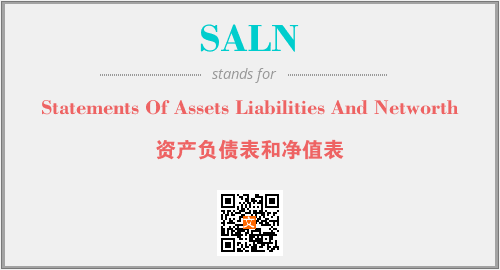 英文缩略词“SALN”经常作为“Statements Of Assets Liabilities And Networth”的英文缩写来使用,中文表示:“资产负债表和净值表”。本文将详细介绍英文缩写词SALN所代表英文单词,其对应的中文拼音、详细解释以及在英语中的流行度。此外,还有关于缩略词SALN的分类、应用领域及相关应用示例等。