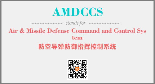 英文缩略词“AMDCCS”经常作为“Air & Missile Defense Command and Control System”的英文缩写来使用,中文表示:“防空导弹防御指挥控制系统”。本文将详细介绍英文缩写词AMDCCS所代表英文单词,其对应的中文拼音、详细解释以及在英语中的流行度。此外,还有关于缩略词AMDCCS的分类、应用领域及相关应用示例等。