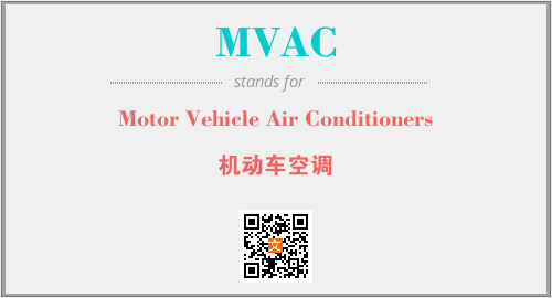 英文缩略词“MVAC”经常作为“Motor Vehicle Air Conditioners”的英文缩写来使用,中文表示:“机动车空调”。本文将详细介绍英文缩写词MVAC所代表英文单词,其对应的中文拼音、详细解释以及在英语中的流行度。此外,还有关于缩略词MVAC的分类、应用领域及相关应用示例等。