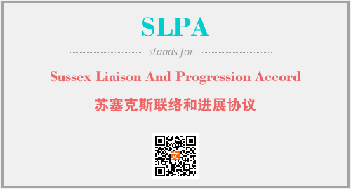 上述内容是“Sussex Liaison And Progression Accord”作为“SLPA”的缩写,解释为“苏塞克斯联络和进展协议”时的信息,以及英文缩略词SLPA所代表的英文单词,其对应的中文拼音、详细解释以及在英文中的流行度和相关分类、应用领域及应用示例等。