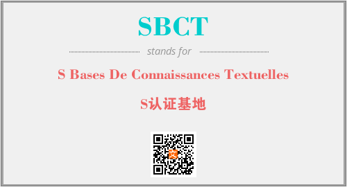 上述内容是“S Bases De Connaissances Textuelles”作为“SBCT”的缩写,解释为“S认证基地”时的信息,以及英文缩略词SBCT所代表的英文单词,其对应的中文拼音、详细解释以及在英文中的流行度和相关分类、应用领域及应用示例等。