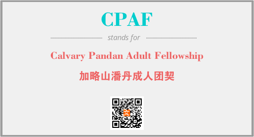 以上为Calvary Pandan Adult Fellowship英文缩略词CPAF的中文解释,以及该英文缩写在英语的流行度、分类和应用领域方面的信息。