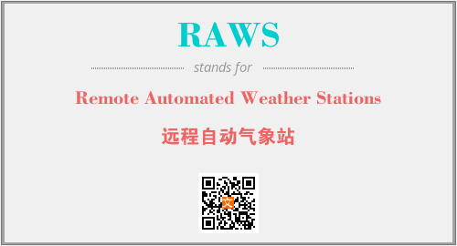 以上为Remote Automated Weather Stations英文缩略词RAWS的中文解释,以及该英文缩写在英语的流行度、分类和应用领域方面的信息。