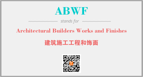 英文缩略词“ABWF”经常作为“Architectural Builders Works and Finishes”的英文缩写来使用,中文表示:“建筑施工工程和饰面”。本文将详细介绍英文缩写词ABWF所代表英文单词,其对应的中文拼音、详细解释以及在英语中的流行度。此外,还有关于缩略词ABWF的分类、应用领域及相关应用示例等。