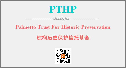 以上为Palmetto Trust For Historic Preservation英文缩略词PTHP的中文解释,以及该英文缩写在英语的流行度、分类和应用领域方面的信息。