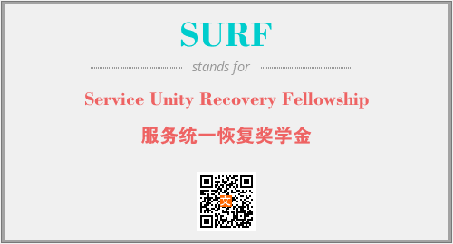 上述内容是“Service Unity Recovery Fellowship”作为“SURF”的缩写,解释为“服务统一恢复奖学金”时的信息,以及英文缩略词SURF所代表的英文单词,其对应的中文拼音、详细解释以及在英文中的流行度和相关分类、应用领域及应用示例等。