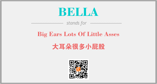 英文缩略词“BELLA”经常作为“Big Ears Lots Of Little Asses”的英文缩写来使用,中文表示:“大耳朵很多小屁股”。本文将详细介绍英文缩写词BELLA所代表英文单词,其对应的中文拼音、详细解释以及在英语中的流行度。此外,还有关于缩略词BELLA的分类、应用领域及相关应用示例等。
