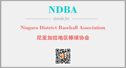 上述内容是“Niagara District Baseball Association”作为“NDBA”的缩写,解释为“尼亚加拉地区棒球协会”时的信息,以及英文缩略词NDBA所代表的英文单词,其对应的中文拼音、详细解释以及在英文中的流行度和相关分类、应用领域及应用示例等。